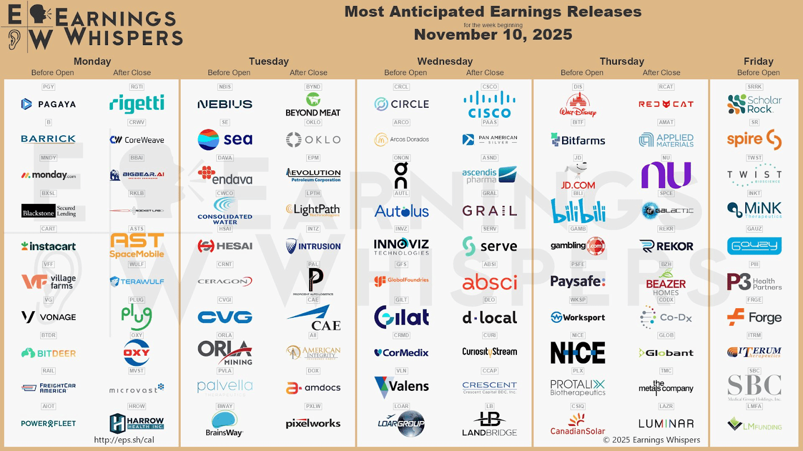 Calendrier des publications de résultats pour la semaine du 10 novembre
