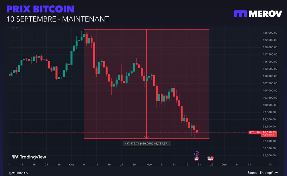 Bitcoin a perdu 30% depuis son sommet. Techniquement, c'est un bear market. Mais tous les bear markets ne se ressemblent pas.